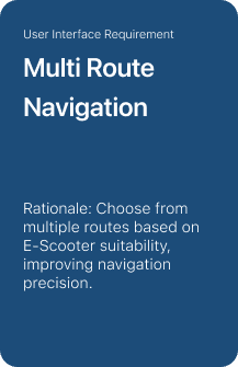 Route options are a key feature available to electric scooter riders as part of the journey is the destination. Users can choose to take scenic routes marked by other users as favourites. Apart from making the journey more enjoyable, this also provides users with a safest option that bypasses large intersections and zones with high traffic.
