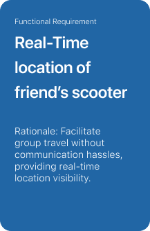 Find a friend, view their location in real-time as you zip through the city. Fun? Right? Works like magic, works like airdrop. When stationary with a friend's scooter in close proximity, turn on the find a friend feature to send or accept invitation to track the users location. Destinations selected in one scooter is automatically shared to friends who are already connected.