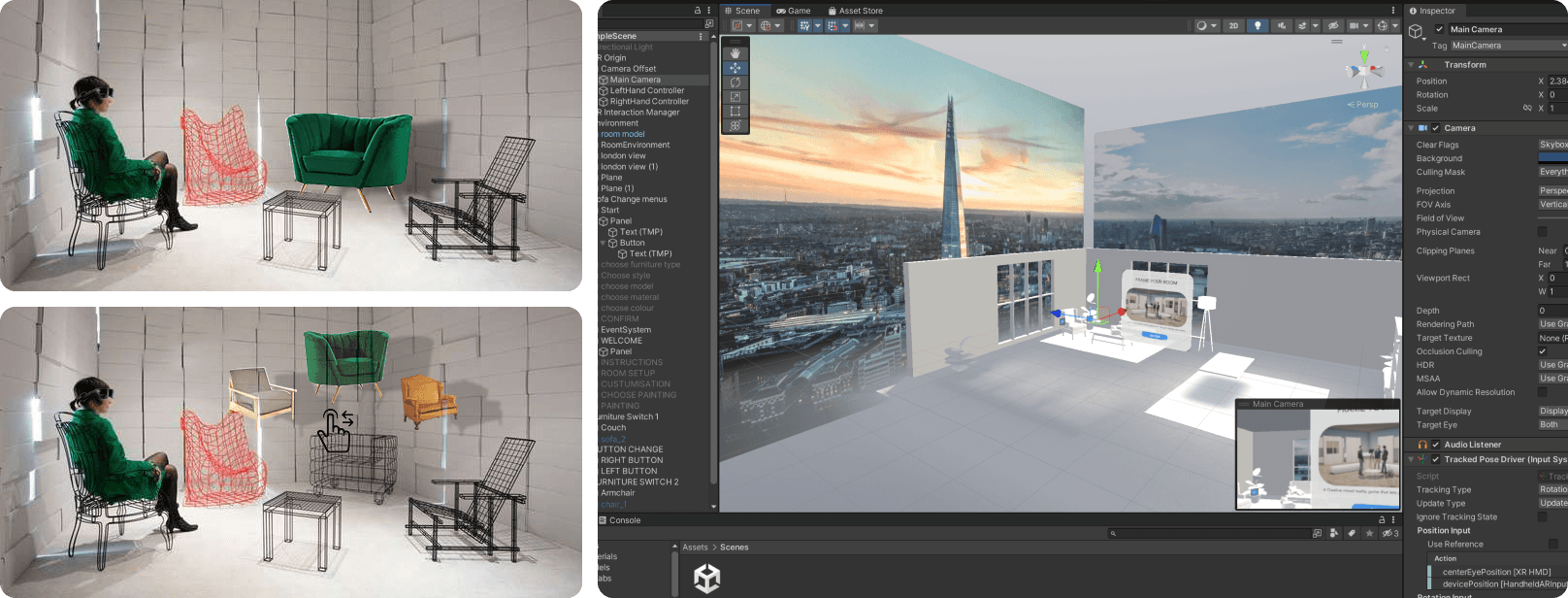 After placing placeholder props, customers can seamlessly browse through diverse furniture models using AR headsets. They will have the flexibility to add items to their cart, experiment with multiple layouts and color palettes, and conveniently make purchases at the counter or later from the comfort of their homes via the mobile or web app.