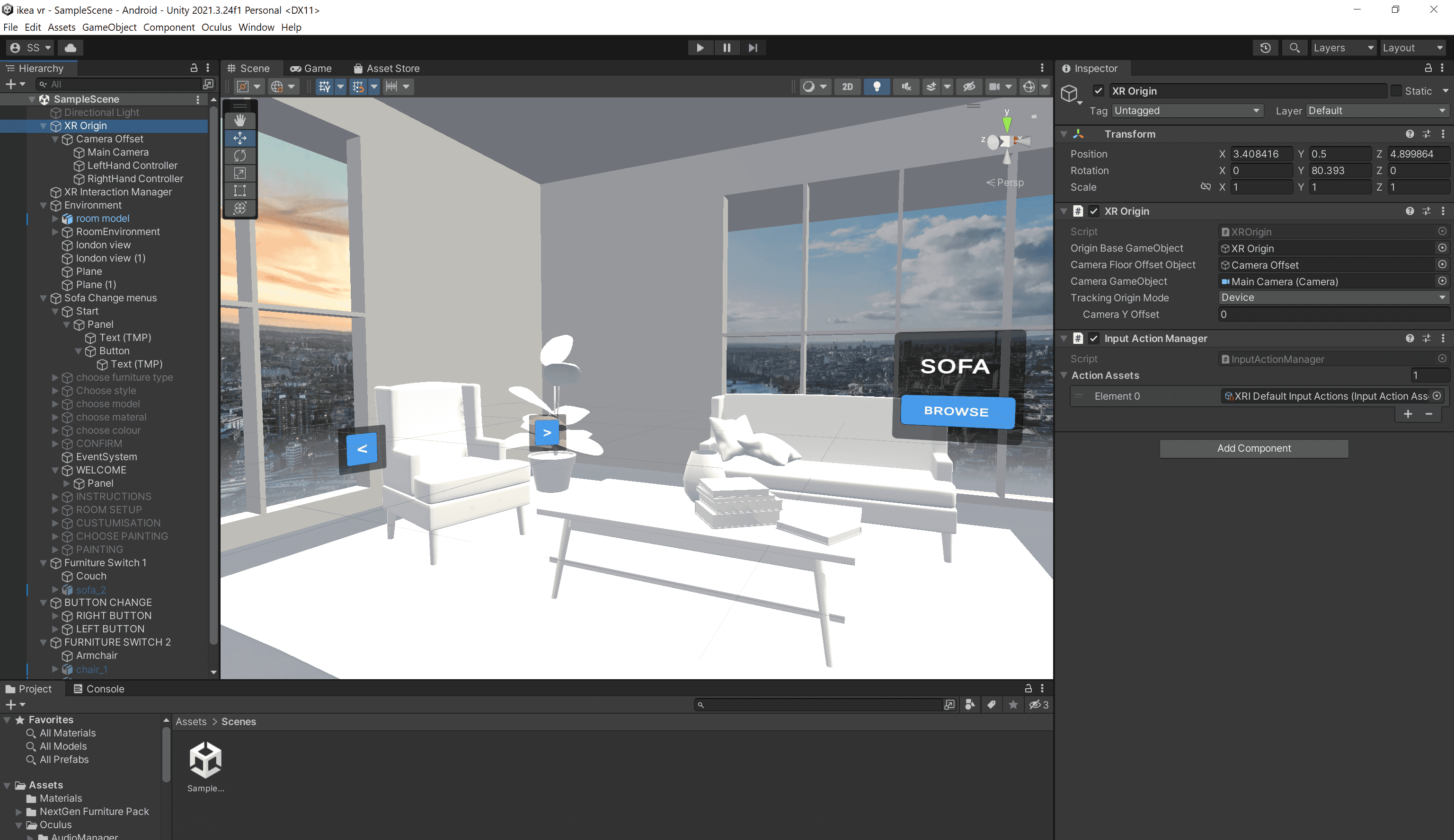 The project is being executed on a Meta Quest 2 VR headset, where the 3D environment of a home will be recreated, and AR UI elements will be placed over it to emulate an augmented reality experience.