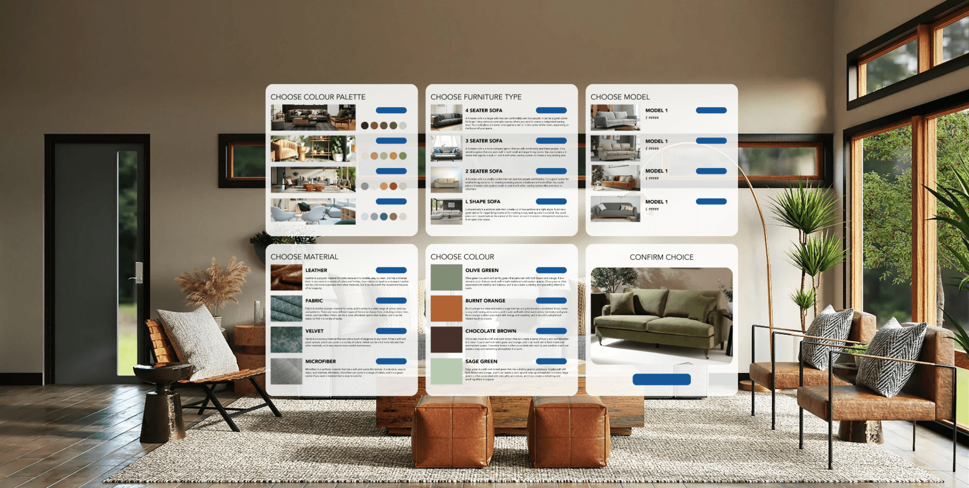 Understand Context: Customers can explore how different furniture pieces fit into their room, adjusting placement and layout as needed.