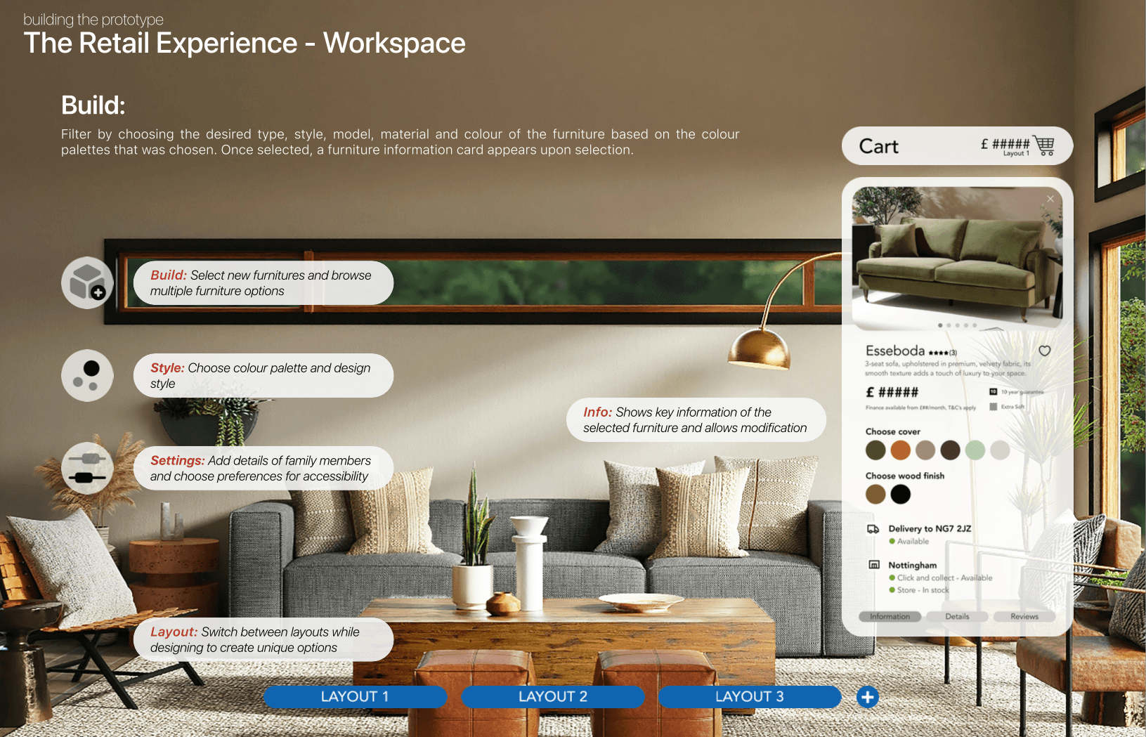 I visited an IKEA store to analyze how the in-store experience impacts purchasing decisions and identify areas where immersive AR could enhance the process. Customers typically follow a three-step approach: viewing the furniture they intend to buy, visualizing it within the context of their own home, and making a confident purchase knowing exactly how it will fit into their space.